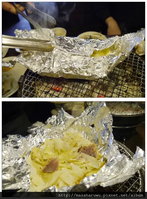 用錫箔紙包起來的高麗菜只需稍微悶烤一下子就可以開吃XD