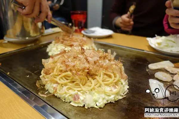 ▼【風月摩登燒】風月大阪燒和風月摩登燒只差在有沒有加雞蛋麵,價格則差了80元,雞蛋麵的份量蠻夠的,想吃飽的人可以點風月摩登燒,只想嚐味道、不想吃太飽的人可以點風月大阪燒。店裡的炒麵也是使用和摩登燒同一款的日本雞蛋麵。