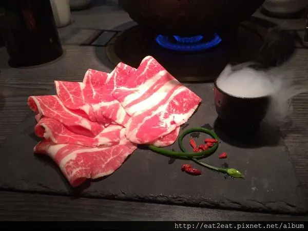 四人套餐的第一道【神】是神仙牛肉,但我們這一鍋不打算煮牛肉,所以換成了松阪豬肉