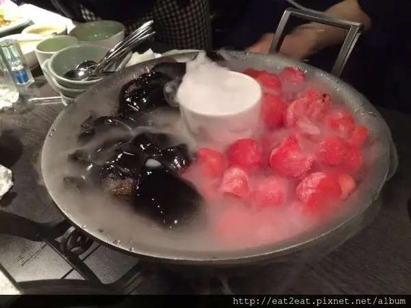 最後端出的「仙氣十足煙囪冰」,是仙草+球狀西瓜剉冰(滿額招待),大夥都拿起相機拍不停,小妹還把乾冰當蠟燭吹是怎樣