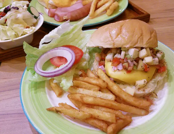 澳洲回味點、初飽漢堡(附薯條)、熱壓吐司(附薯條)、三明治(附薯條)為單點