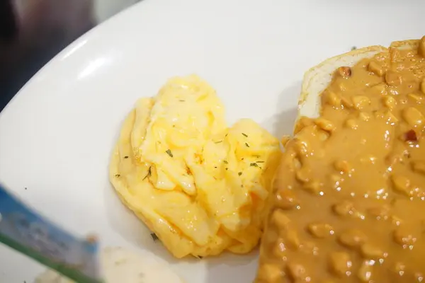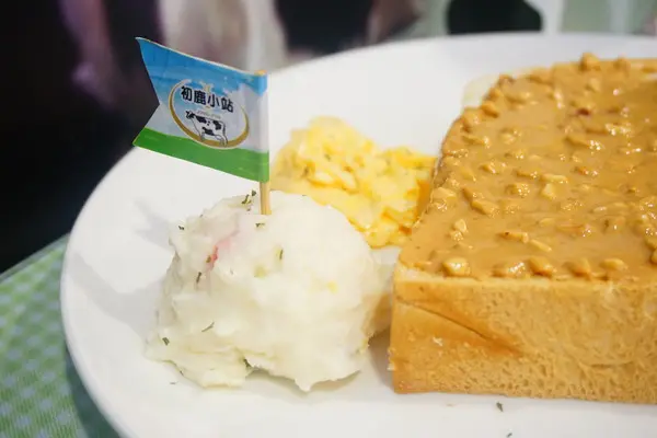厚片單點附馬鈴薯泥和炒蛋