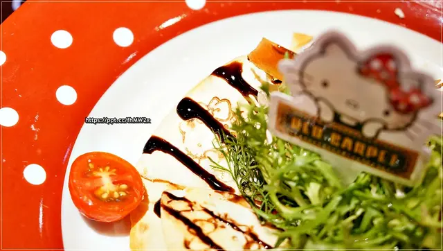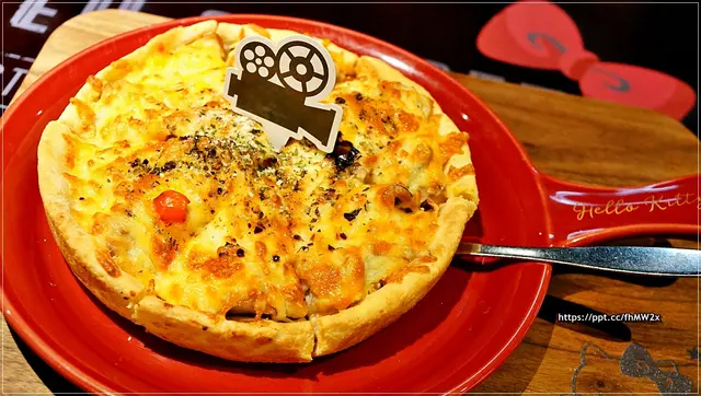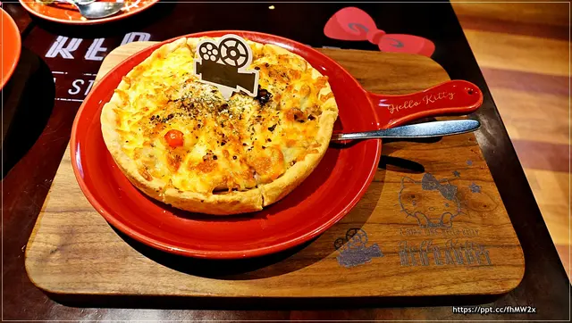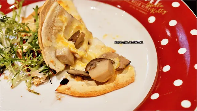 這松露菌菇起士薄餅,上頭還有印上Hello Kitty