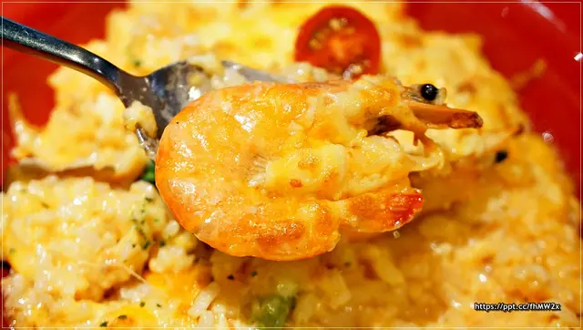我點的海鮮肉醬焗烤起士飯,焗烤最怕裡面的食材沒有熟