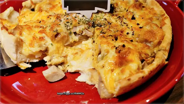 披薩裡面的雞肉真的是好多,雞肉吃起來很嫩又不乾,再加上會牽絲的起司