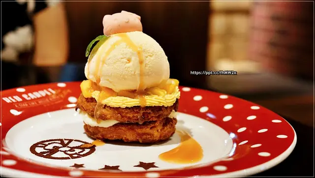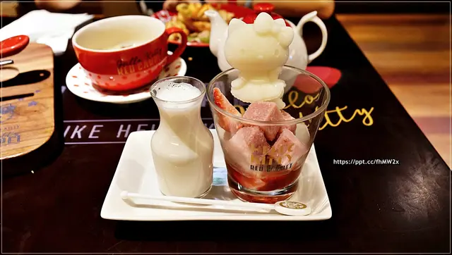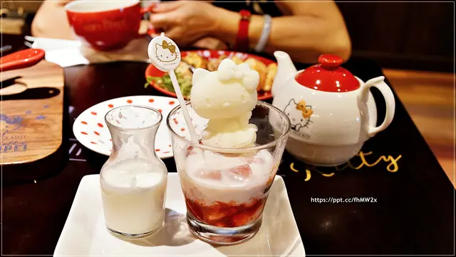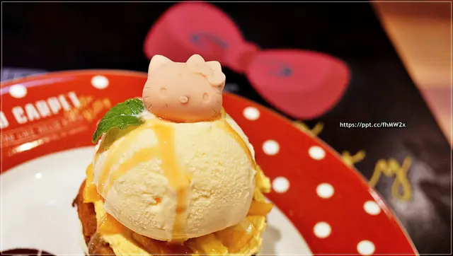 上頭有一個可愛的Hello Kitty巧克力,接著是香草口味的冰淇淋