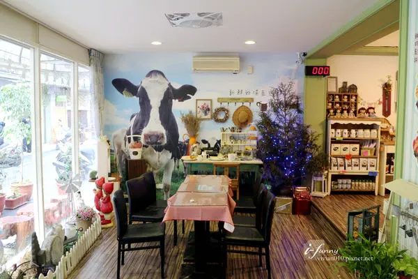門口的招牌及遮雨棚都有著乳牛身上的黑白斑點,透露著可愛的氣息。