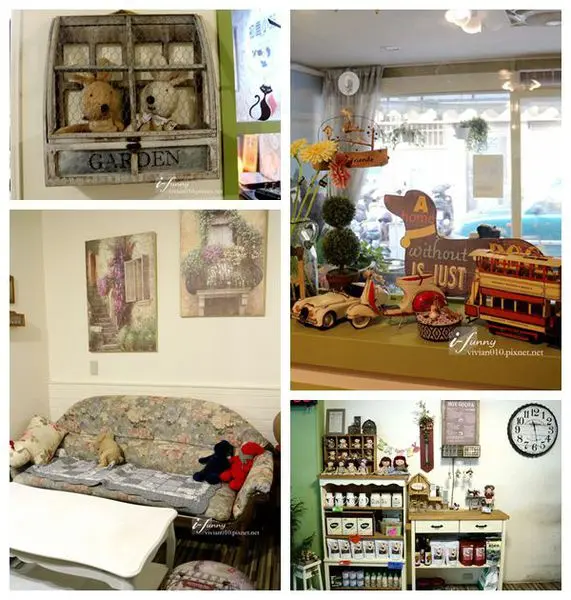 店內擺設以鄉村風為主,四處可見店主精心的收藏品,更顯店內溫馨可愛的風格。