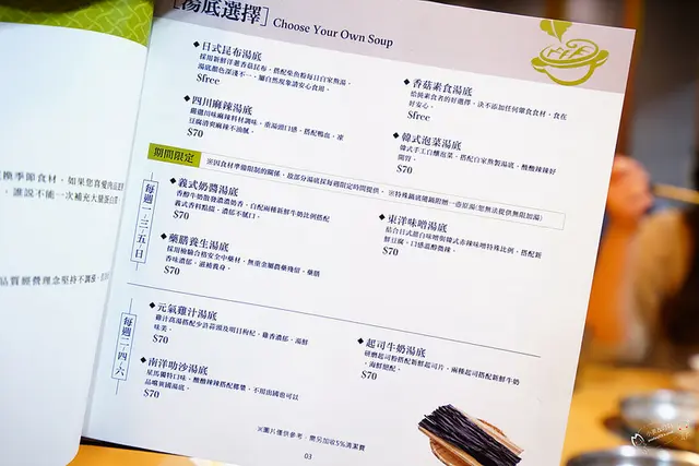 沐也主鍋$238,飽飽主鍋$288,經典主鍋$338,精緻主鍋$428、霸氣主鍋$428
