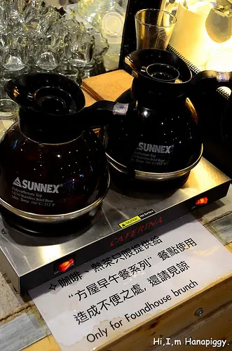 凡點方屋餐廳早午餐系列的大家,都會拿到一個小馬克杯,可自行到櫃台旁的矮桌倒取咖啡和熱茶,此為無限量供應喔。