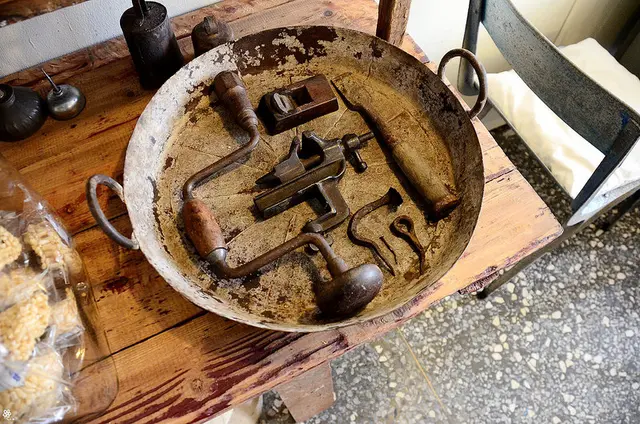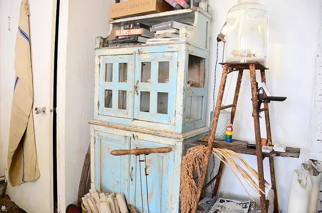在Merci vielle能找尋到刻著歲月痕跡的舊櫃、表面剝落斑白的燈罩和農具等古物,