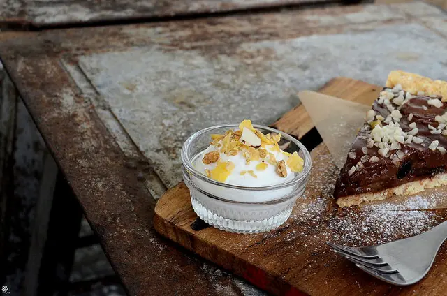 一旁以玻璃小缽盛裝的則是鮮奶油,
