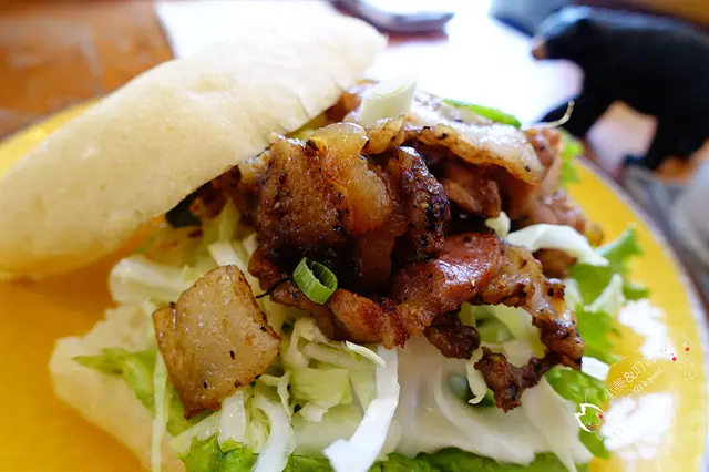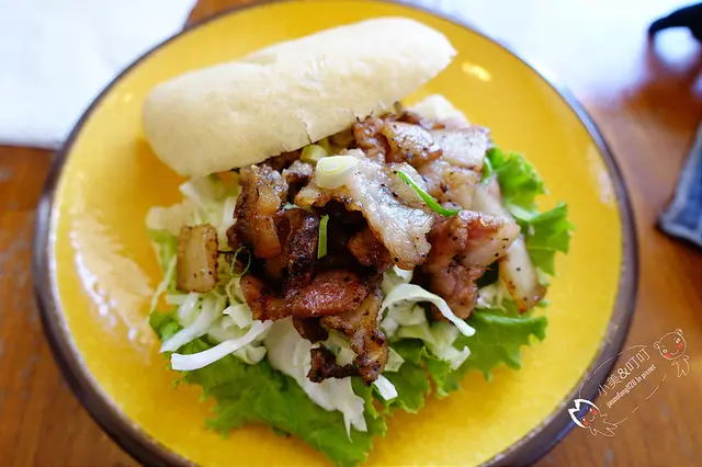 加入少許的蔥去提味~會點這漢堡就是被這道料理吸引的,鹹豬肉漢堡耶!吃起來意外的驚喜,還滿搭的耶