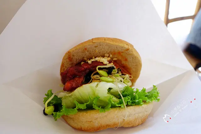拖鞋堡?其實我也不知道為何叫拖鞋堡,不過這漢堡中夾了滿滿的鹹豬肉,下方大量的高麗菜絲,我想是剛好可以去油膩吧?