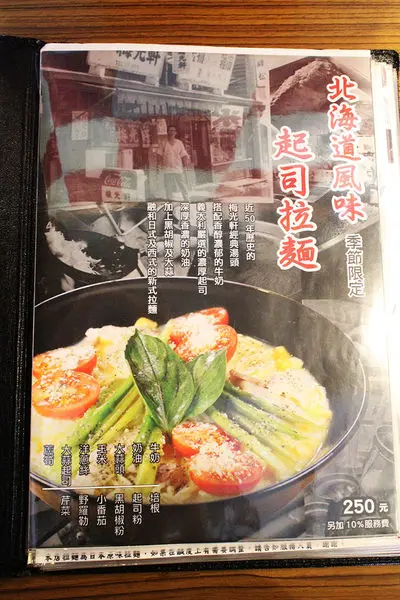 北海道風味"起司拉麵" $250+10%服務費