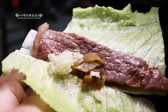 也可包附生菜及店家所備的剝皮辣椒及蔥拌洋蔥泥,更添蔬菜滋味及多層次的口感