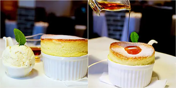 舒芙蕾搭配了香草冰淇淋和楓糖漿