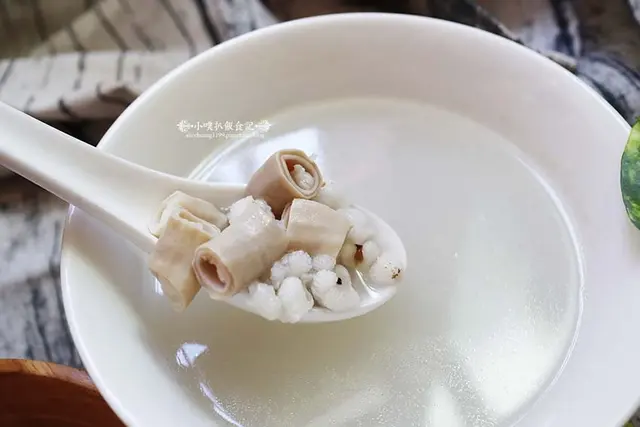 裡面的大腸份量超多的,沒有騷味,相當醇香美味,還有清新的薏仁,湯頭相當清雅爽口