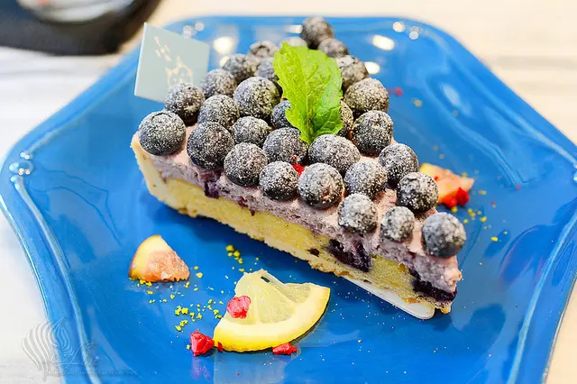 藍莓乳酪配上鋪得滿滿的新鮮藍莓~ 藍莓們各個圓潤飽滿,是愛吃藍莓者不該錯過的一道甜點。