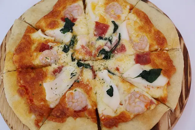 加入蝦仁 花枝等等多種餡料 餅皮微脆 起司香氣十足