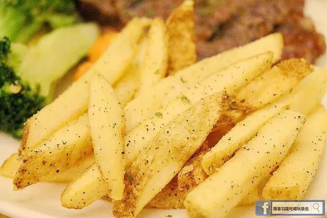 而一旁的薯條是使用帶皮馬鈴薯製作而成