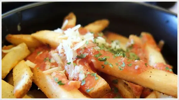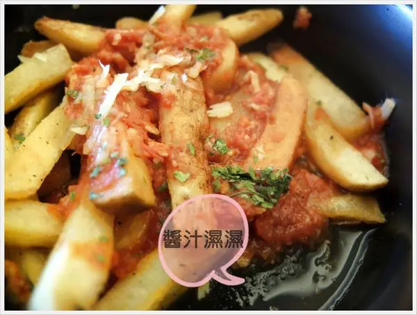 感覺好像把義大利麵上麵的醬汁淋在薯條上,