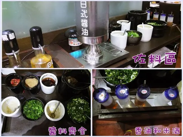 日式醬油、黑白醋、辣椒、辣油、花生粉、沙茶
