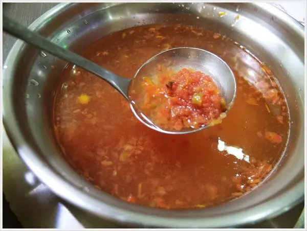 結果不是,是撩起來滿滿番茄碎末,應該是整個番茄下去燉煮爛