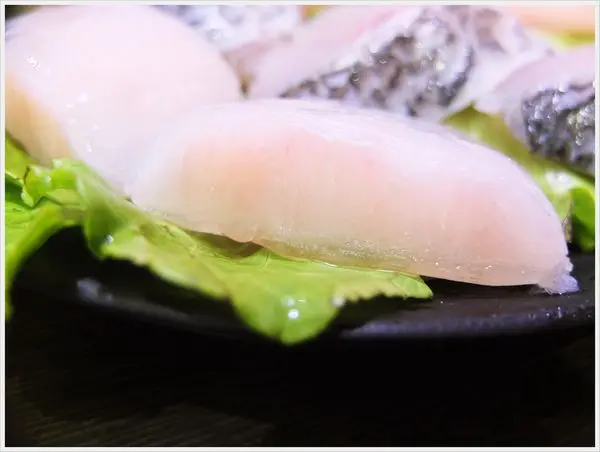 但是自從吃過新鮮鱸魚生魚片之後,就愛上上面黑色皮的膠質
