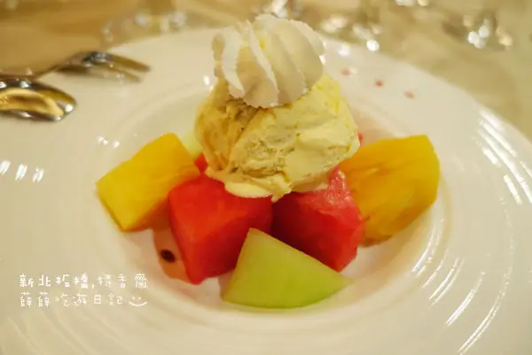 現在則是換成健康的水果拼盤,上面那球是香蕉冰淇淋~ 冰淇淋表現的比水果好哈哈