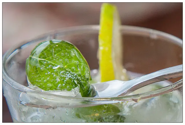 栗點薄荷香檸配水果鬆餅加差額是260元,薄荷香檸是放上新鮮的薄荷葉搭最近很紅的檸檬汁,特別的是薄荷是包在冰塊裏頭,看起來就好像水晶球似的。味道喝起來不會太酸,很簡單的一道飲品。