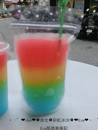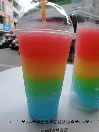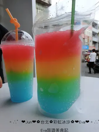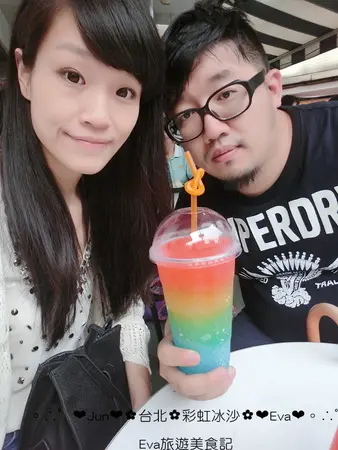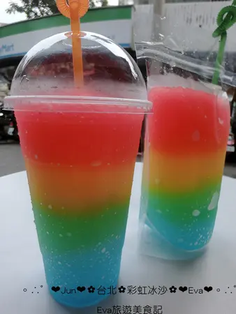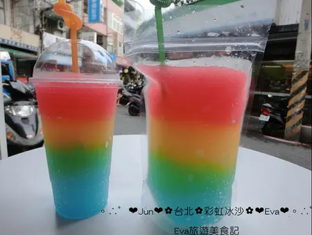 是的是的,昨天跑去跑了美美的彩虹冰沙,就在淡水英專路上喲!