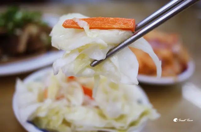 【泡菜】不辣,微酸清脆,非常開胃的小菜。