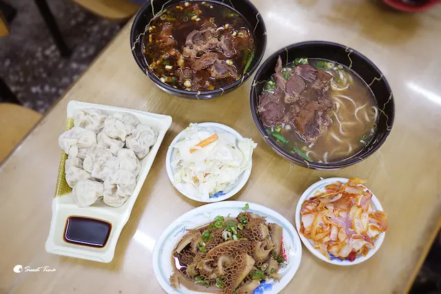 這天我們的餐點內容有 : 紅燒半筋半肉麵、清燉半筋半肉麵、水餃、豬頭皮、泡菜、滷牛肚。