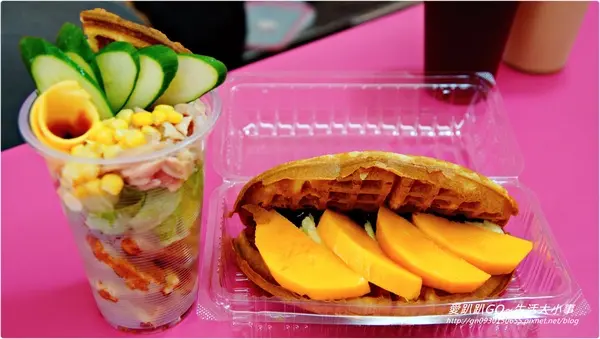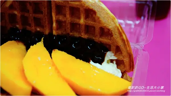 第二款點了芒果卡士達巧醬鬆餅 哇!!滿滿的芒果阿。。也真的是粉大片 真想問~老闆你這樣有賺頭嗎??真的好大心阿 每一種鬆餅價位不超過100大洋~真的很親民阿