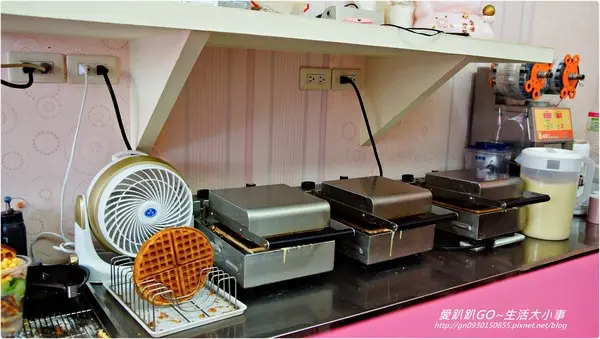 烤好的鬆餅要先吹電風扇冷卻一下 然後在加料~之後美味鬆餅就出爐囉