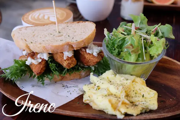 裏頭夾的炸魚排 外層很酥 搭配的塔塔醬也很順口