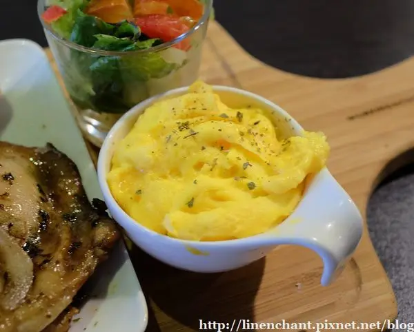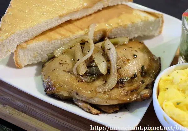 主角青醬洋蔥烤雞用了一整塊雞腿肉,青醬的味道並不明顯,我覺得就很像洋蔥烤雞...雞肉的軟嫩度還不錯,口味不會太重...我也蠻喜歡!!!