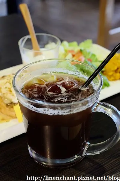 餐點裡面附的是黑咖啡,所以我加價換了冰拿鐵.....還算蠻順口的,我好快就喝光光了!!!