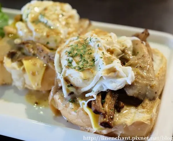巴薩米克醋炒菇起司班尼迪克蛋佐胡麻醬(190元)
