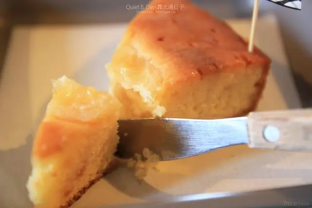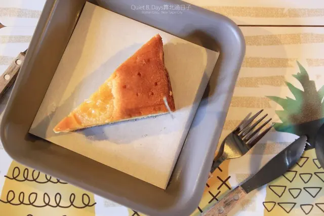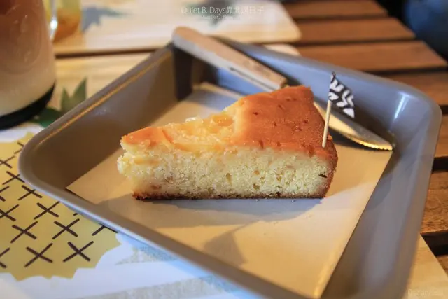 小小的三角切片 卻擁有著紮實的蛋糕體 淡淡地飄散著檸檬和煦的酸氣