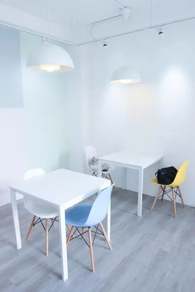 清爽簡約,櫃臺後方同樣是以大片玻璃區隔工作室和店內空間 -