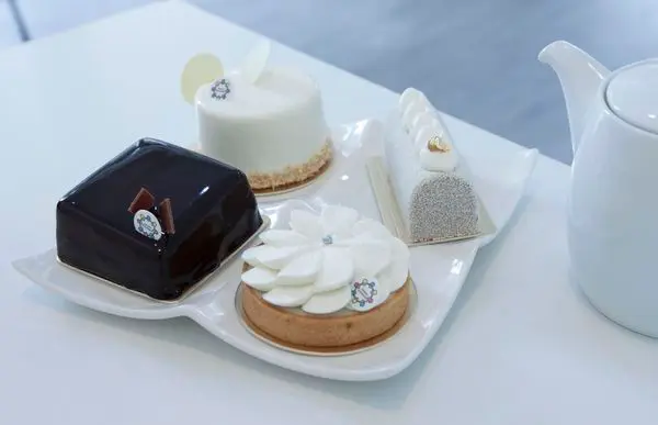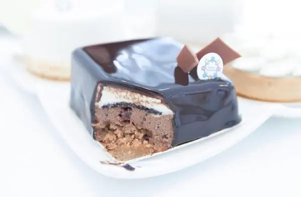 "黑巧克力鏡面、白巧克力壁女慕絲、可可酥餅脆片、塔尼亞黑巧慕絲、