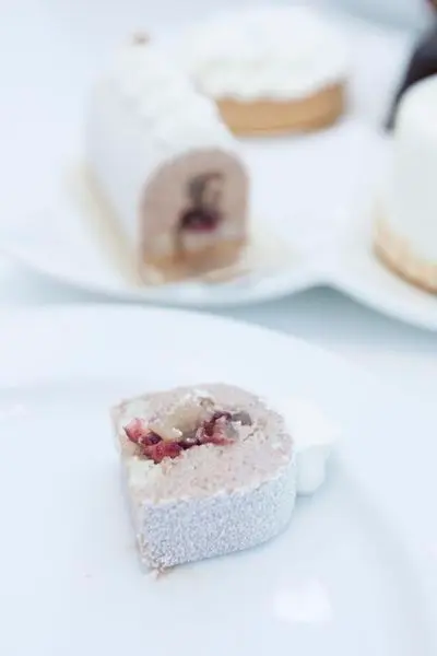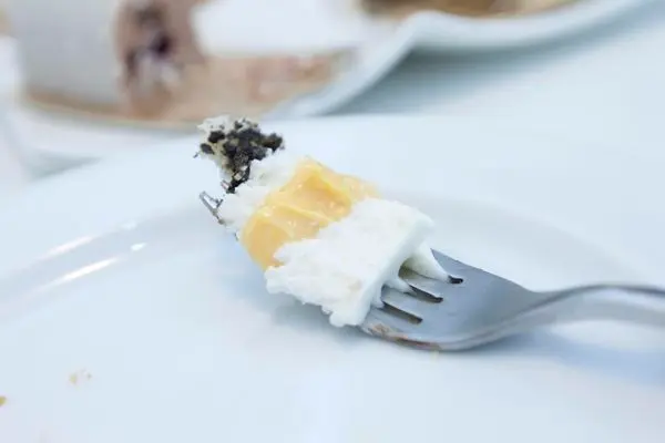 毫不費力,叉子就這樣柔順地將蛋糕化開,