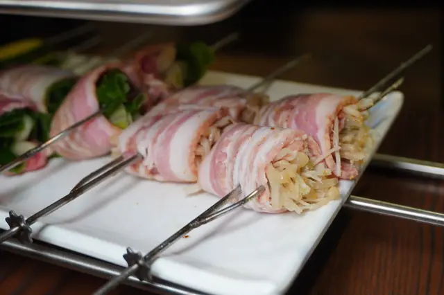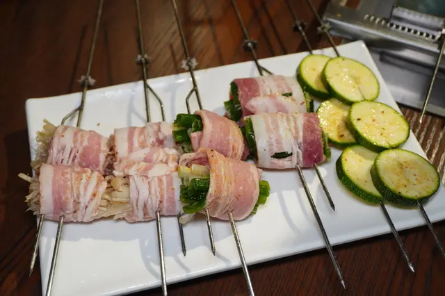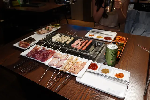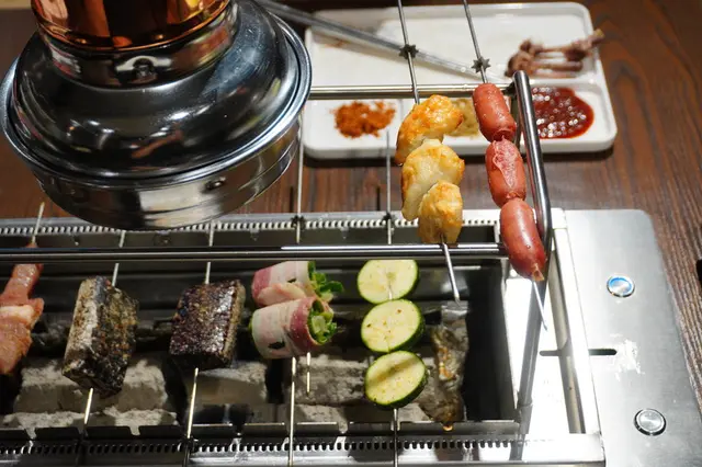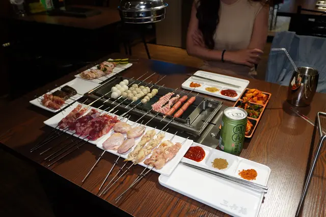 先享用串烤, 然後加上烤網享用傳統烤肉,