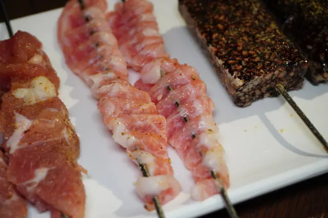 淡粉紅色的松阪豬第一次在串燒裡看到讓人期待,