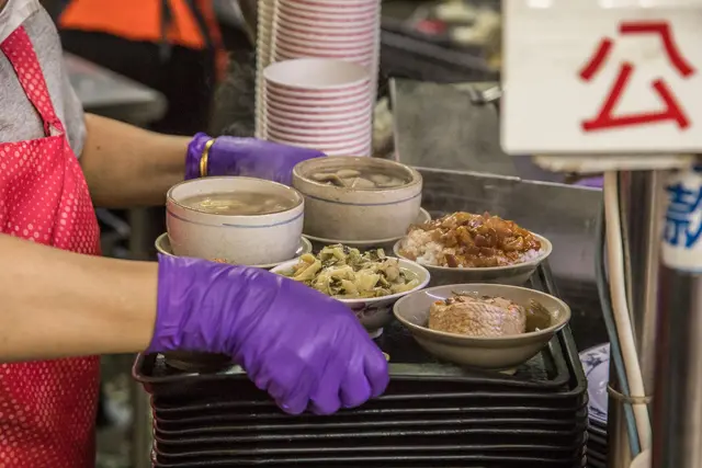 今大魯肉飯的點餐方式也很有趣,排到攤位前直接跟服務生點餐,點完餐後也不用自己找位置,服務生會連同你的餐點帶位座位上,這也算是另類的好服務吧^^,今大魯肉飯的價位真的很親民,怪不得能深獲在地人的喜愛