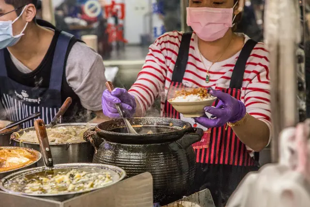 邊排隊邊看攤前滿滿的好料,尤其是那鍋香噴噴的魯肉,一匙一匙淋上滿滿的魯肉,看起來真的好吃樣!