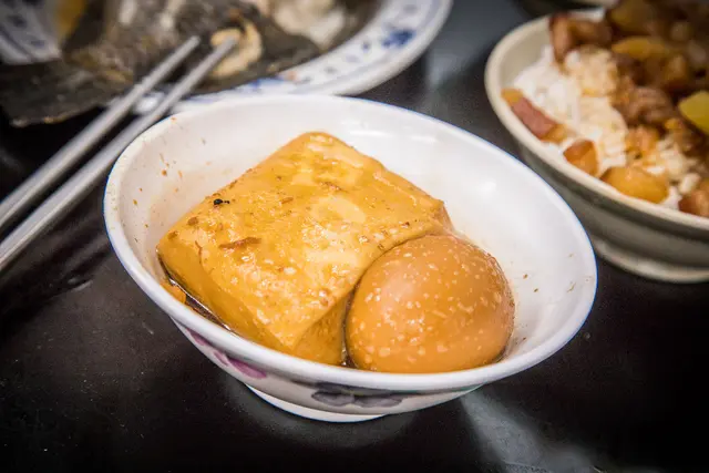 滷豆腐跟滷蛋,滷蛋蠻普通的,沒有特別驚豔,但滷豆腐就很不錯,裡面超嫩,外面也很入味好吃!