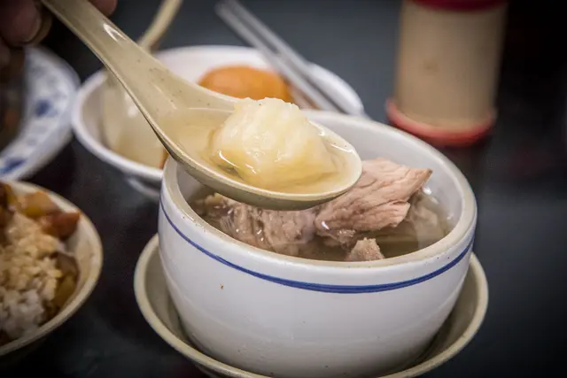 今大是屬於肥肉較多的魯肉飯,一邊吃的時候還能感受到滿滿的膠質敢跟滷汁香氣,白飯也煮的粒粒分明充滿彈性,肉丁肥而不膩,肥肉入口即化,瘦肉還帶有紮實的口感,調味上出乎意料的清爽,沒那麼重鹹,難怪有人一吃就是好幾碗,但我還是比較喜歡鹹一點的滷肉比較下飯